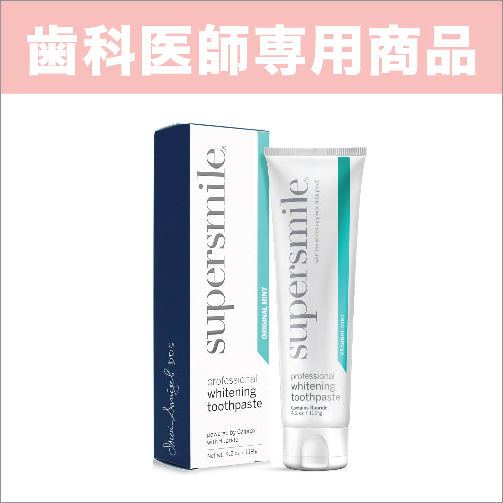 スーパースマイル特製の成分Calproxでコーヒー、お茶、タバコ、赤ワインなどのステインを綺麗に取り除きます。